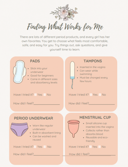 Explore comfort your way. Inside you’ll find a selection of both organic and non-organic pads and tampons — from trusted natural cotton options to familiar everyday brands. Try different styles, materials and fit so you can find your perfect match.”