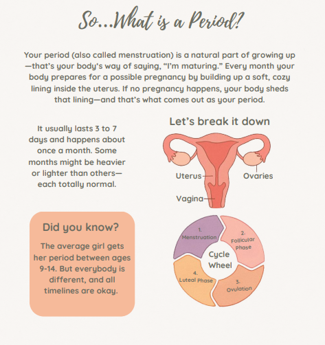 Getting your period might feel a little weird, exciting, confusing, or even scary—and guess what? That’s totally OK! This journal is here to guide you through it all. Inside, you’ll learn cool facts, track your cycle, write about your feelings, and discover what makes you feel strong and confident. Every page is just for you—no pressure, no judgment. Growing up is a big deal, but you don’t have to go through it alone. Think of this journal as your safe space—a little pocket of calm, creativity, and truth.